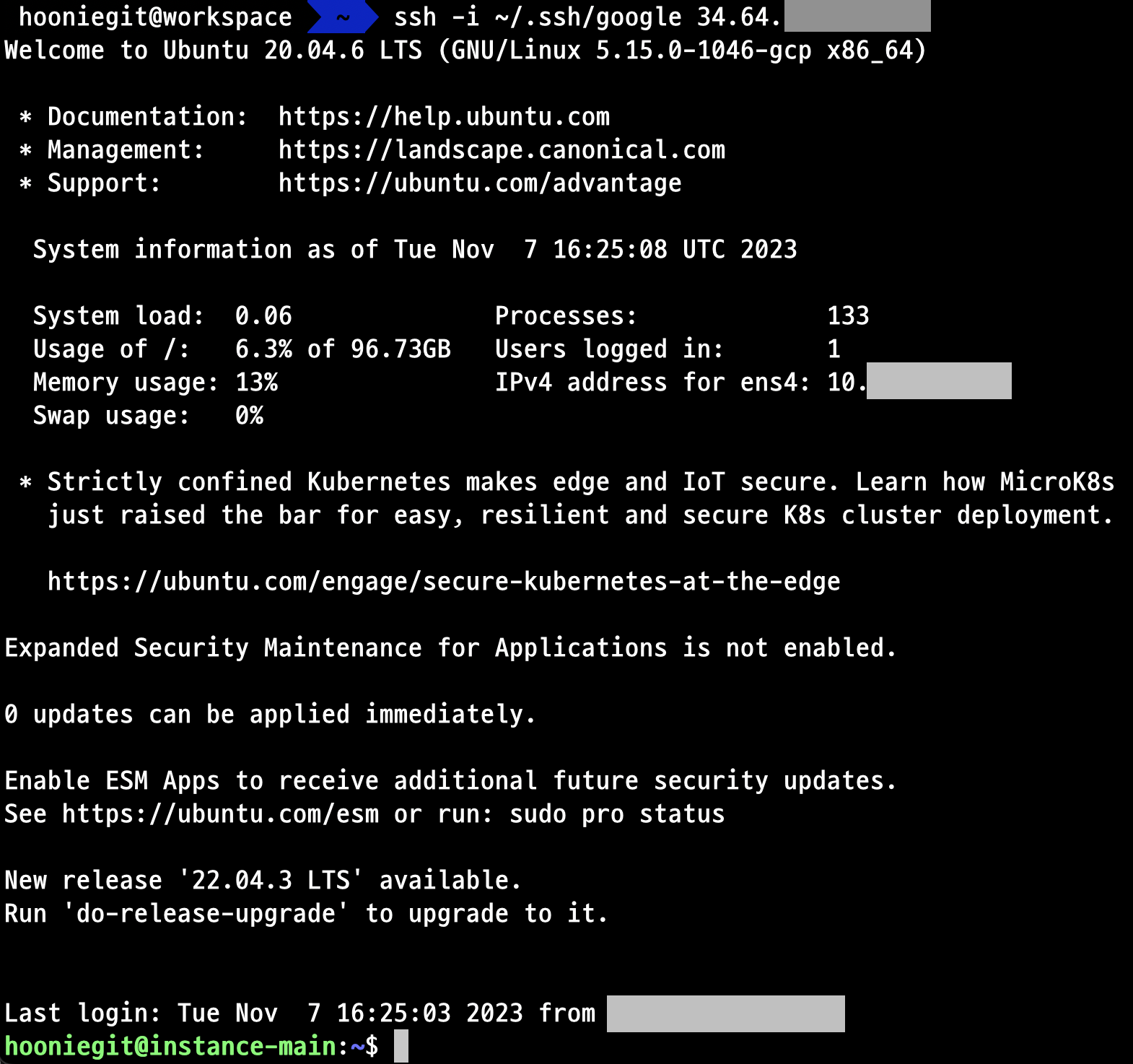 성공적으로 인스턴스에 접속된 것을 확인하실 수 있습니다!