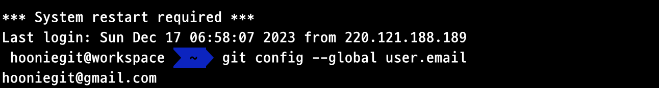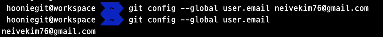 아래의 명령어를 통해 contribution용으로 등록한 이메일 및 유저명을 확인할 수 있습니다.